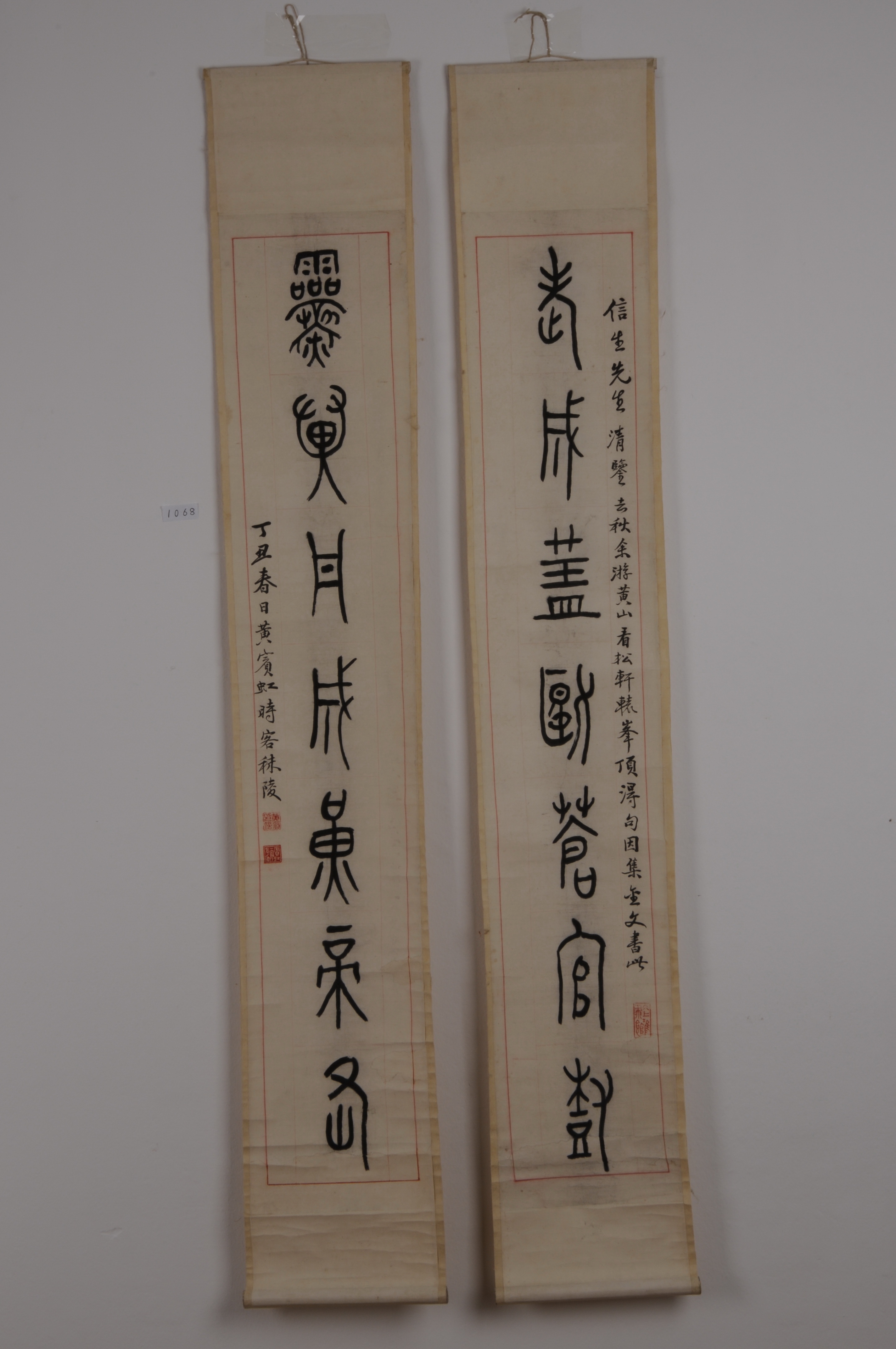| 1068 | 近代黄宾虹钟鼎文楹联 | 1937 | 书法 | ![]() |