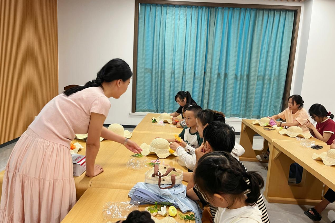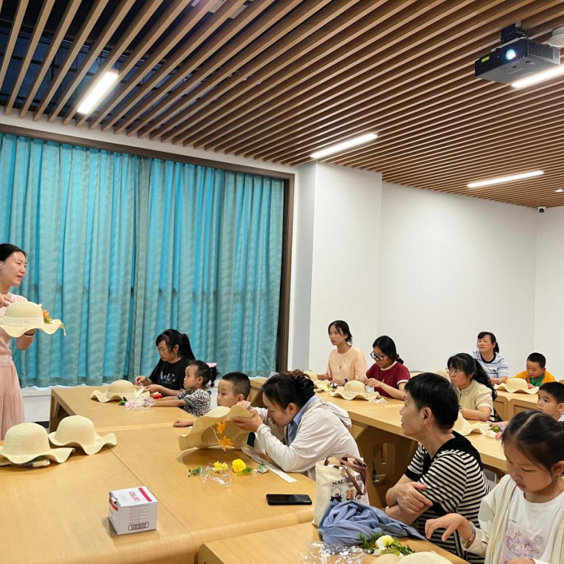 活动以节气文化为引,结合徽州雅致的生活美学,让参与者在炎炎夏日感受到手作带来的清凉意趣。现场,社教老师首先以图文并茂的形式,详细讲解了大暑节气的物候特征、民间习俗等文化内涵。随后,参与者们发挥创意,将干花、彩带等装饰元素巧妙搭配,制作出各具特色的花艺草帽。一顶顶普通的草帽在巧手装扮下,或清新雅致,或绚丽多彩,展现出别有韵味的生活美学。