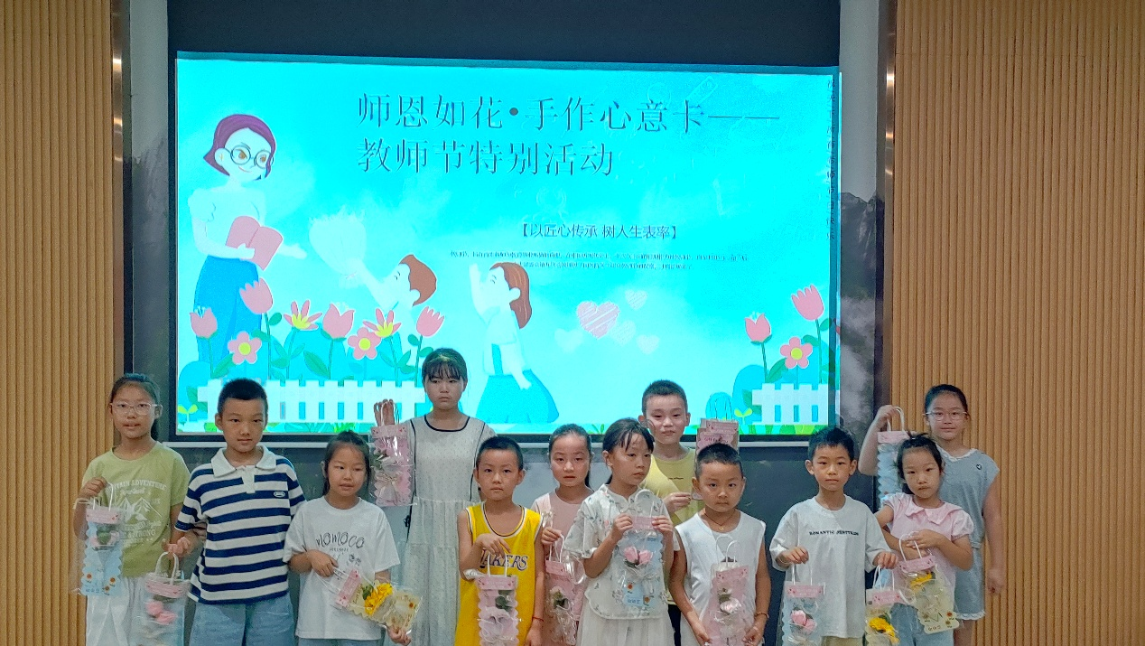活动中,社教老师首先为孩子们讲解了教师节的由来。“教师节”并非现代独有,早在古代就有尊师重教的传统。汉代时,教育家孔子诞辰日(农历八月二十七)被定为“祭孔日”,皇帝会亲自率领文武百官祭拜孔庙,这可以说是古代教师节的雏形。在唐宋时期,各地书院也会在孔子诞辰日举行祭典,学生们向老师敬赠酒肉、鞋袜等礼物,表达敬意。现代教师节则几经变迁,最终于1985年将每年的9月10日定为教师节,旨在肯定教师为教育事业所做的贡献,弘扬尊师重教的社会风尚。了解完教师节的历史渊源后,孩子们在社教老师的指导下,开始动手制作鲜花贺卡。